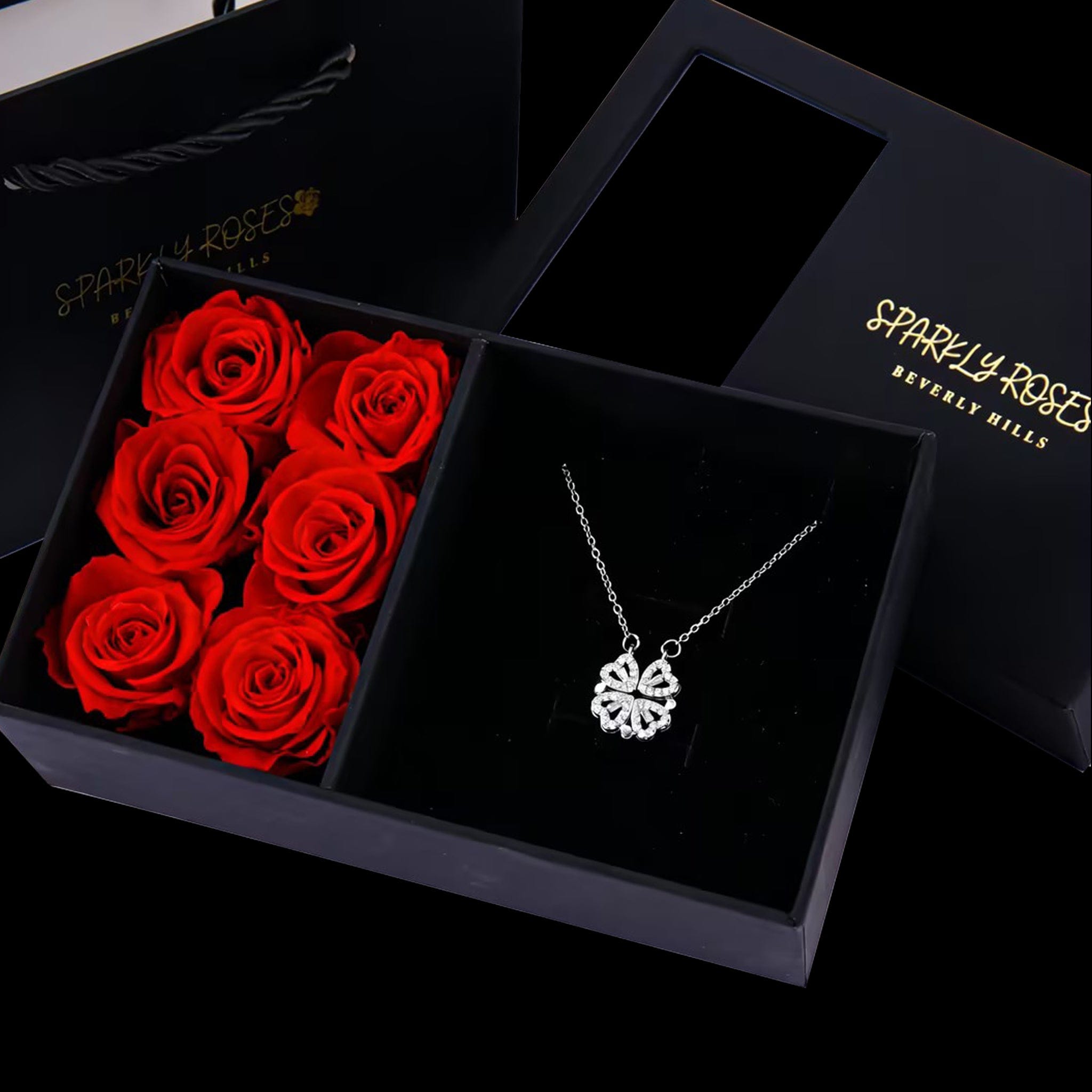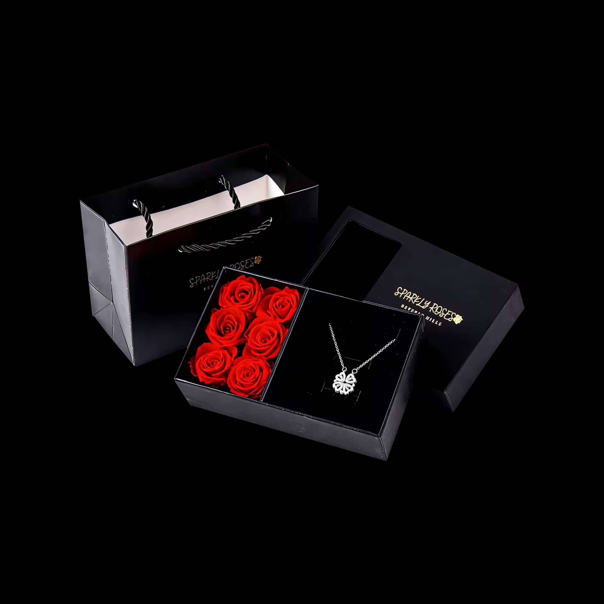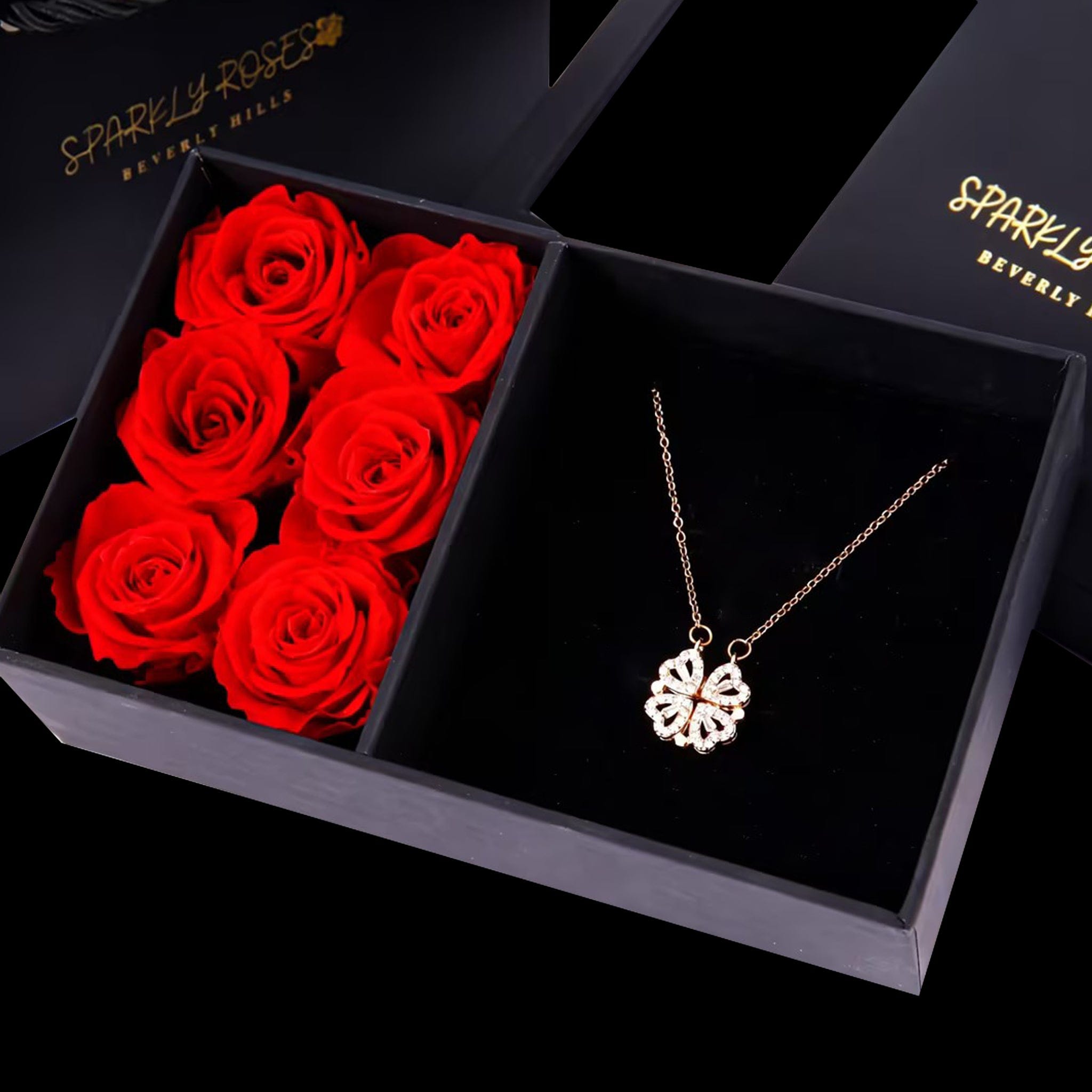 At first glance, it’s a four-leaf clover… but open the petals and it reveals four delicate hearts, a hidden message of love, luck, and connection. Nestled beside romantic red roses in a luxury gift box, this stunning necklace (in gold, silver, or rose gold) is more than jewelry; it’s a beautiful surprise that says “you mean everything to me.”