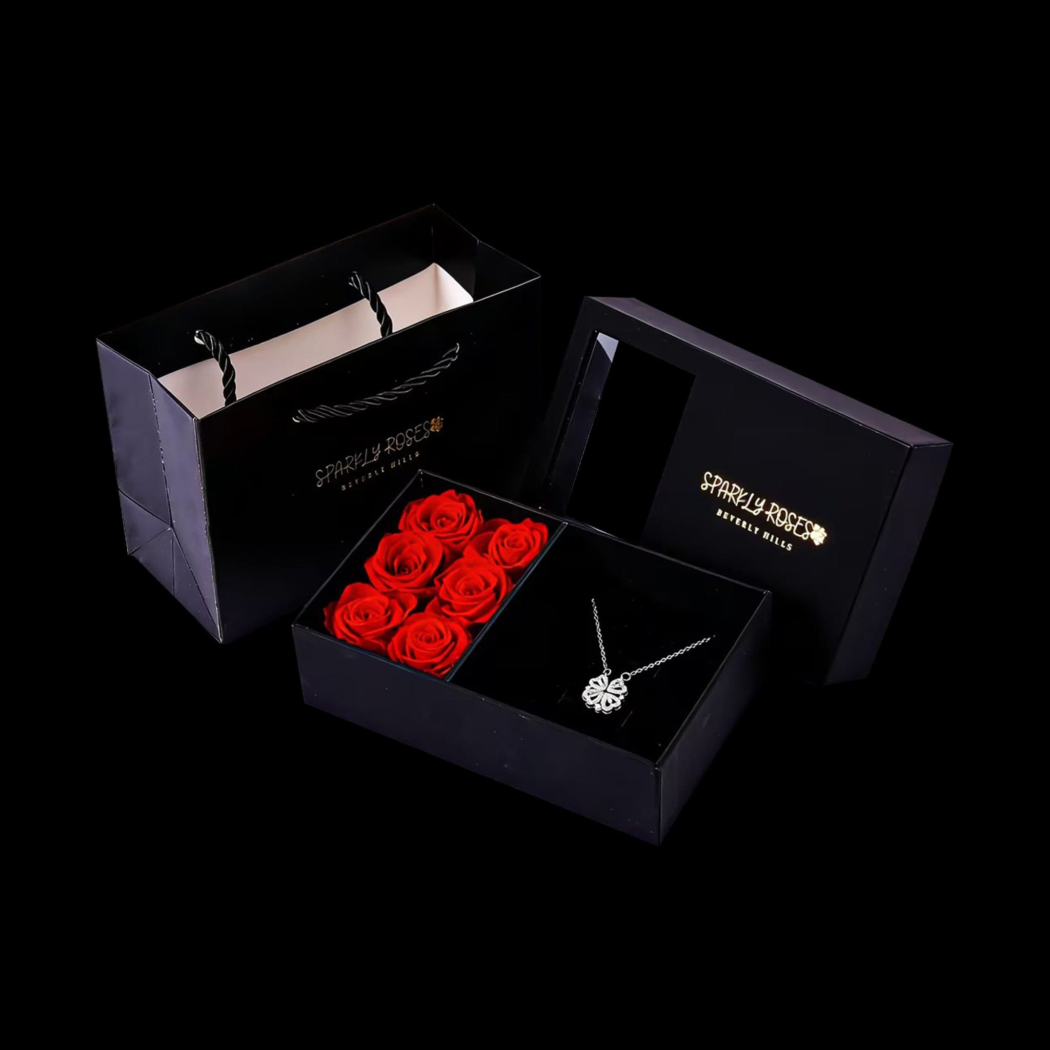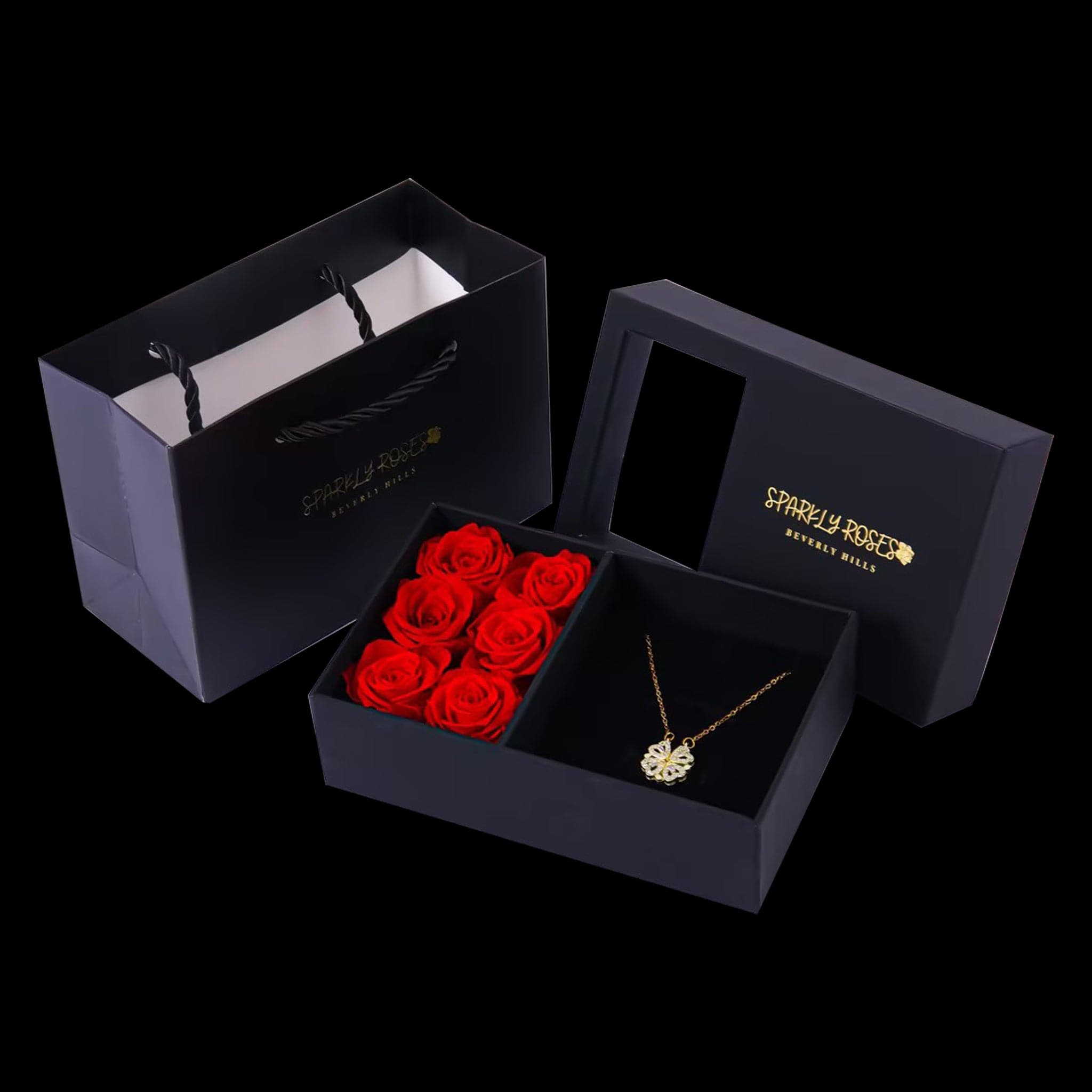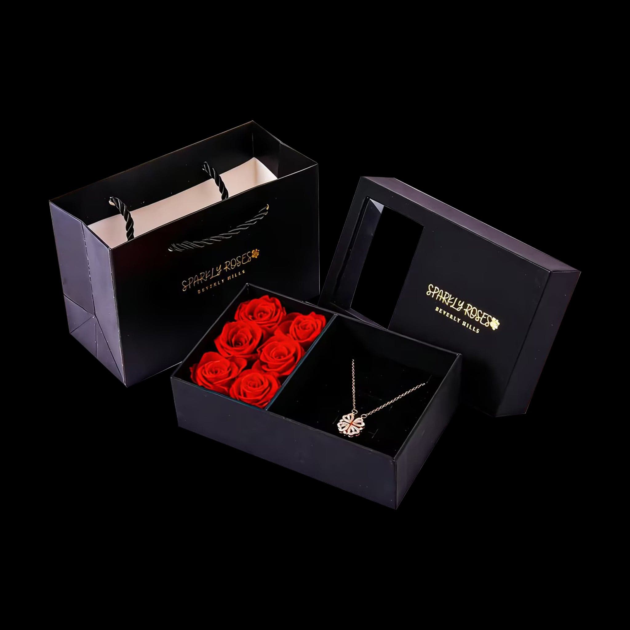 At first glance, it’s a four-leaf clover… but open the petals and it reveals four delicate hearts, a hidden message of love, luck, and connection. Nestled beside romantic red roses in a luxury gift box, this stunning necklace (in gold, silver, or rose gold) is more than jewelry; it’s a beautiful surprise that says “you mean everything to me.”