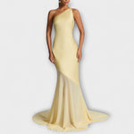Zvýšte svoju eleganciu s naším ohromujúcim bielym maxiklinom s jedným ramienkom, ktorý je navrhnutý na formálne večery, svadby a prestížne podujatia. Detail s priehľadným lemom pridáva nádych rafinovanosti a robí ho dokonalou voľbou pre každú špeciálnu príležitosť.