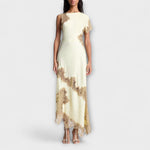 Objavte dokonalú kombináciu elegancie a pohodlia s našimi šikmo strihanými, asymetrickými šatami. Boli navrhnuté tak, aby elegantne obopínali vaše telo a majú nádherné béžové čipkované vsadky a štýlový výrez na chrbte s uzáverom na háčik a očko.