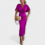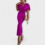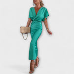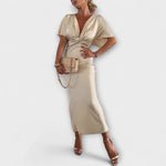 Sable ™ |Pevný saténový maxi šaty s V-výstrihom a krížovým uzlom