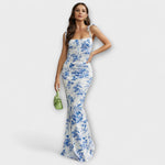 Thalia ™ | Kvetinová potlač spoločenských šiat s viazanými ramienkami