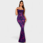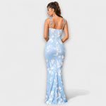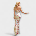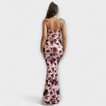 Vstúpte s dôverou v týchto ohromujúcich maxi šatách, ktoré pritiahnu pozornosť s nádherným celoplošným kvetinovým vzorom. Bez chrbta a spaghettovými ramienkami vytvárajú šik siluetu, zatiaľ čo načechraná oblasť na prsiach pridáva nádych sofistikovanosti.