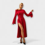 Objavte dokonalú kombináciu elegancie a pohodlia s našimi úchvatnými šatami, ideálnymi na rande, párty, svadby a bankety. Vyrobené z kvalitného materiálu, tieto šaty ponúkajú štýlový jednofarebný dizajn s jemnými čipkovými akcentmi, lichotivým V-výstrihom a módnymi rúškami na dlhých rukávoch.