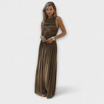 Okrúhly výstrih a maxi dĺžka vytvárajú nadčasovú siluetu, ktorá je ideálna pre akúkoľvek príležitosť – od záhradných párty po slnečné prechádzky. Skrytý zips s háčikom a očkom na zadnej strane zabezpečuje bezproblémové uzavretie a robí z nich elegantnú voľbu pre váš šatník.