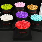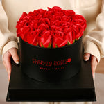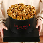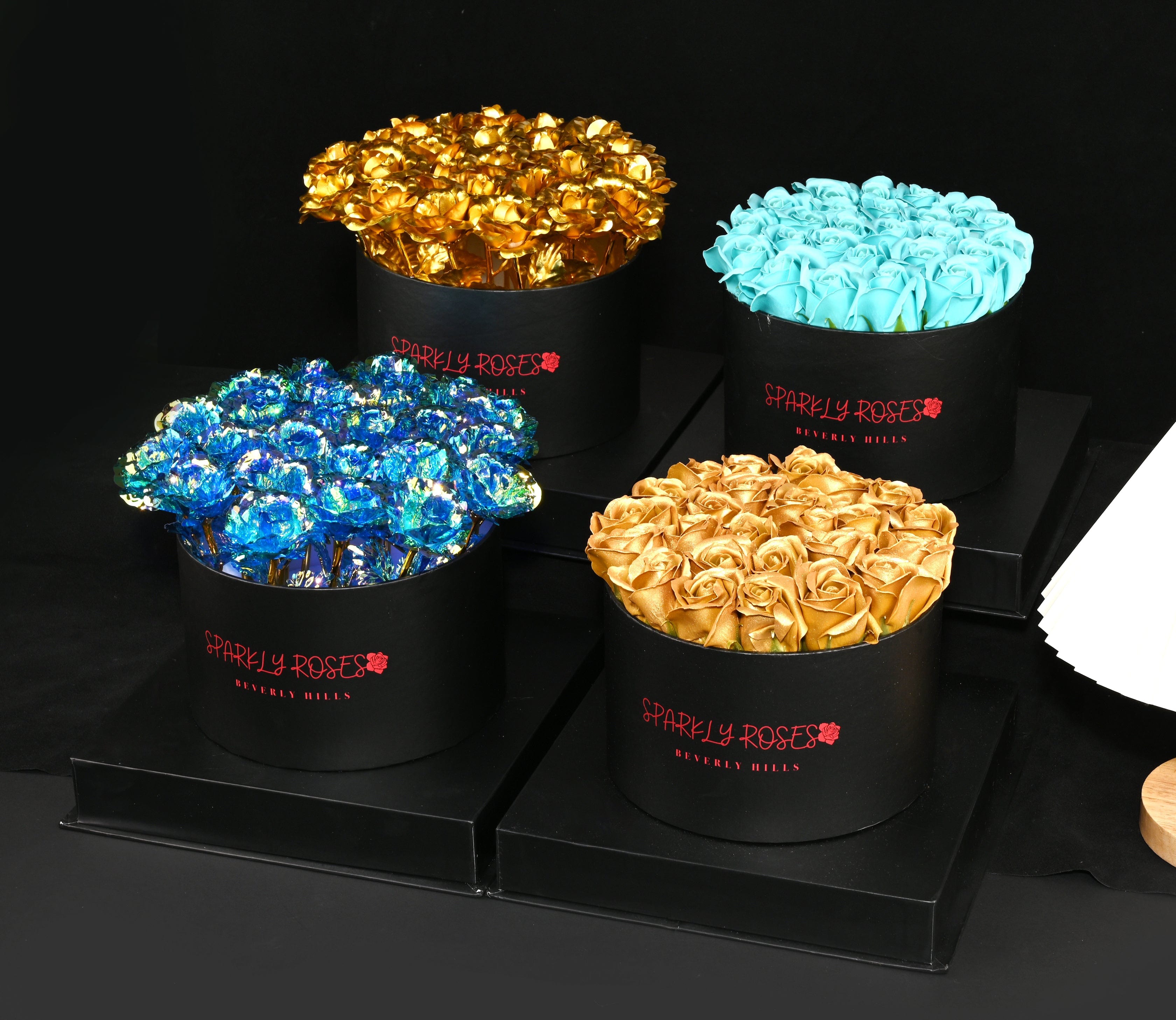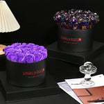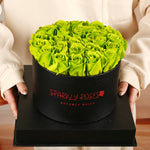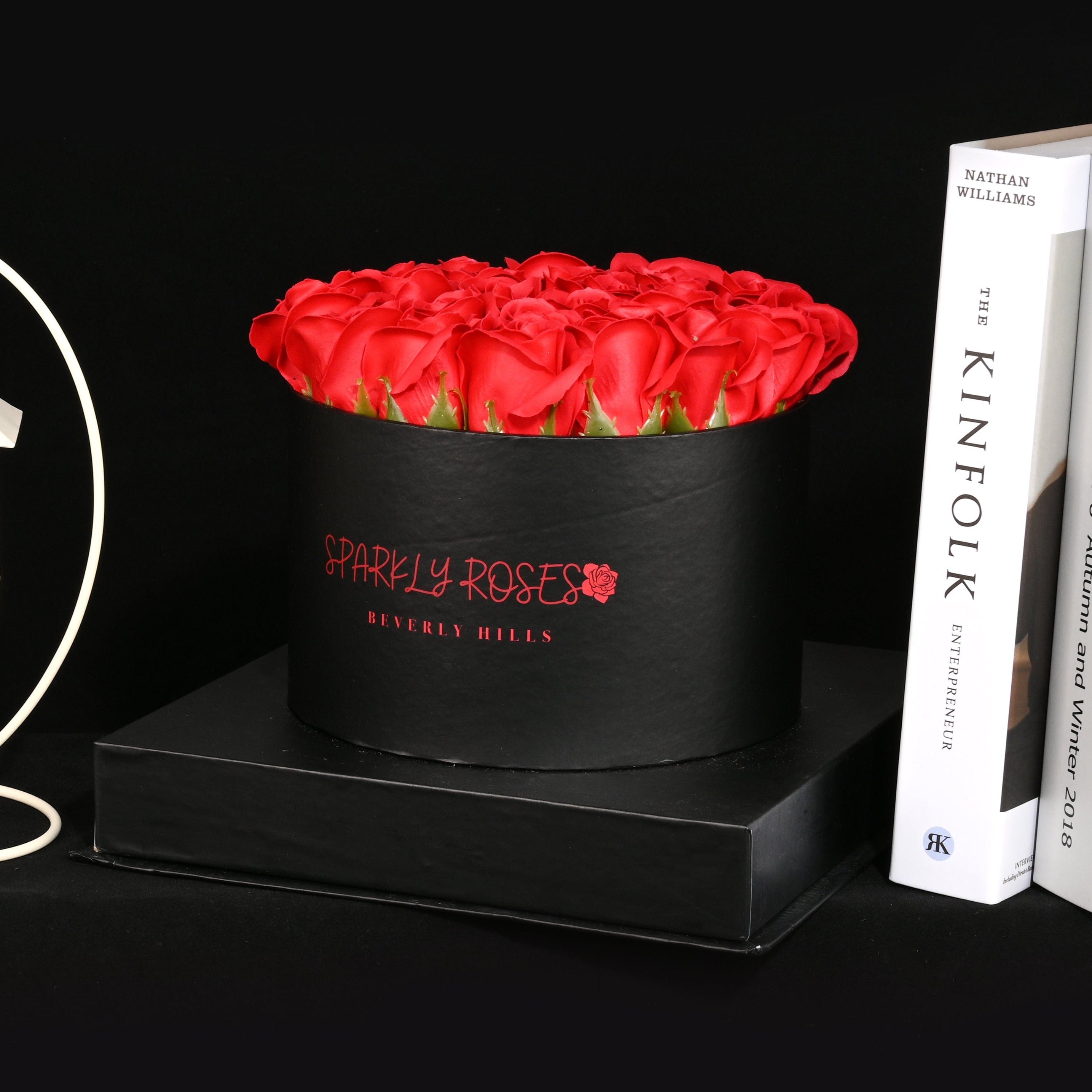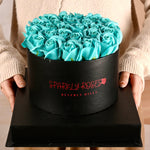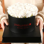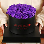 A luxury eternal rose arrangement made of our eternal roses that last a lifetime arranged in a round elegant box.