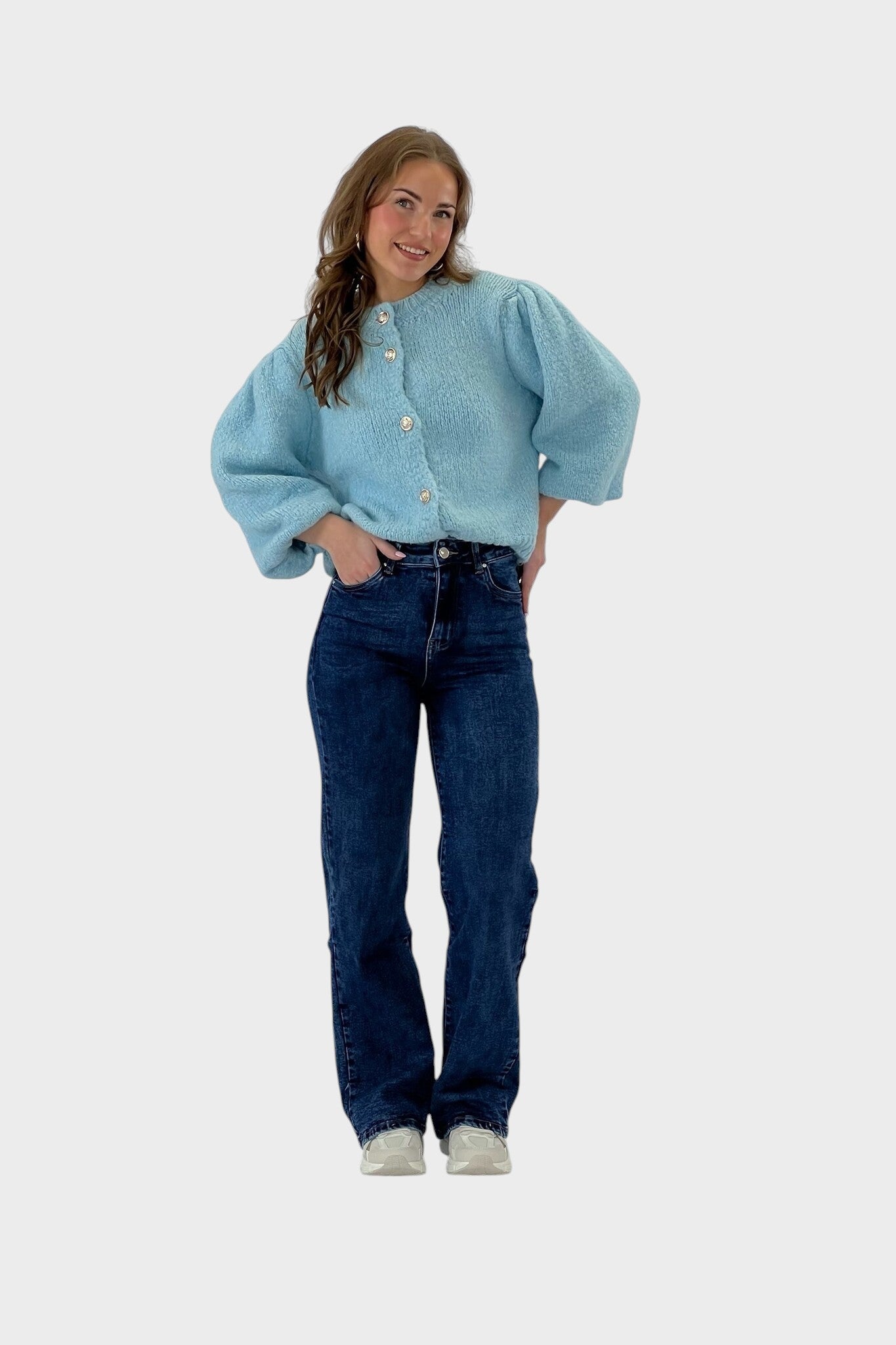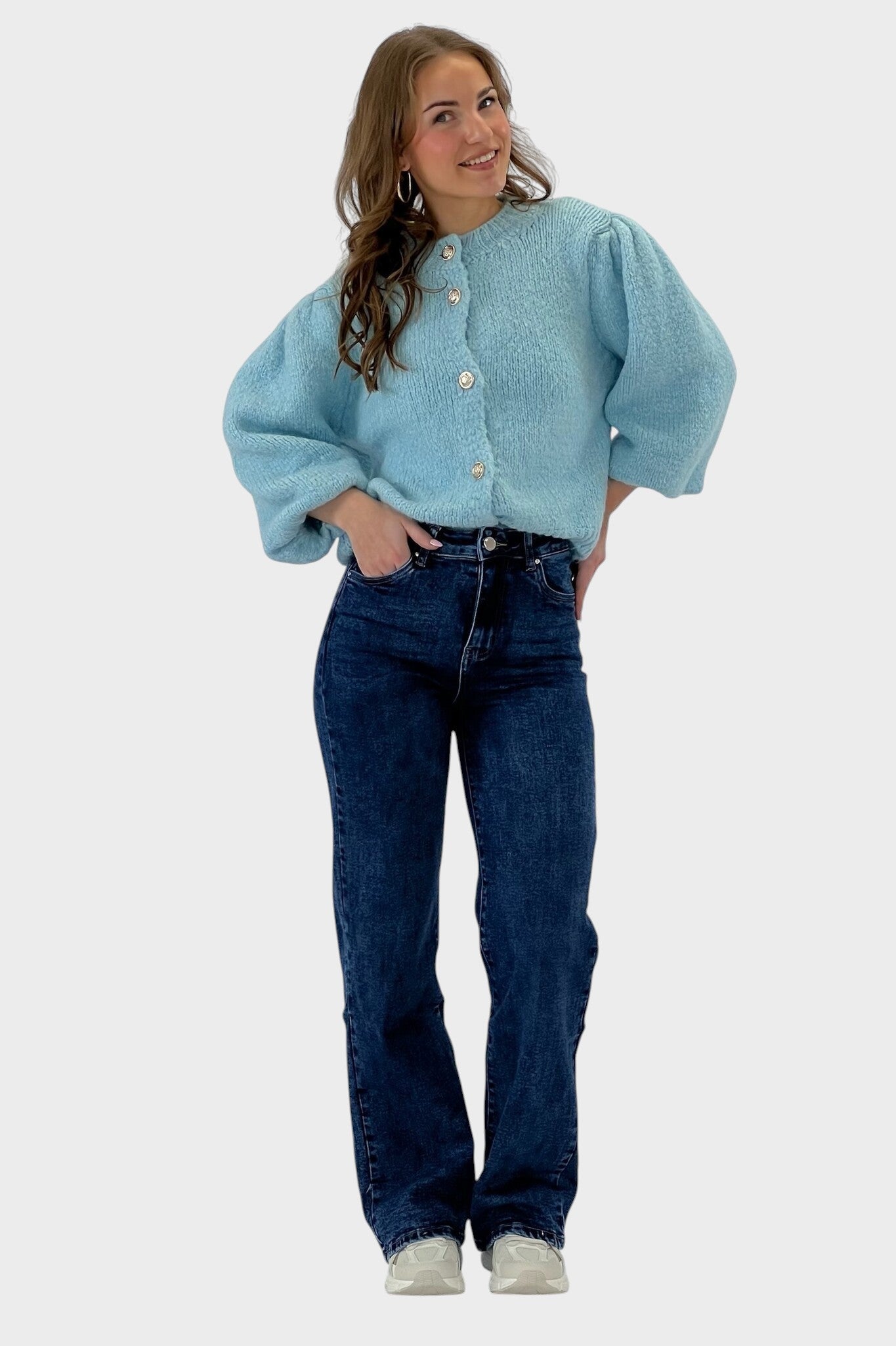 Tieto džínsy so širokými nohavicami sú určené pre ženy, ktoré si cenia pohodlie a eleganciu v každodennom outfite. Voľný strih poskytuje slobodu pohybu a uvoľnené nosenie, ktoré zvýrazňuje postavu s nádychom rafinovanosti. Univerzálne a ľahko kombinovateľné, sú ideálne na ležérne aj elegantnejšie outfity, pričom prinášajú sebavedomie a štýl pri každej príležitosti.